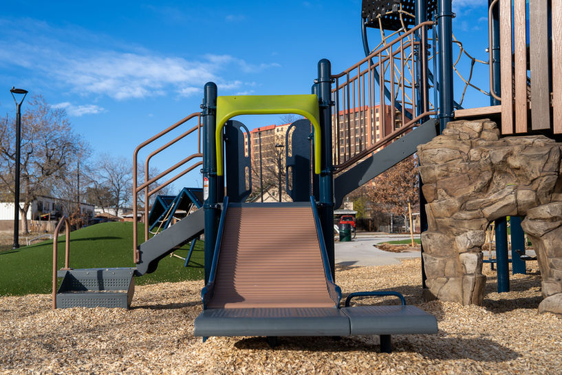 Joe P. Martinez Park re-opened November 2025 at 900 N Raleigh St, Denver, CO 80204 in West Denver. The playground features a massive, custom, 30-foot Triumph tower connected to a PlayBooster® tower via a custom cable tunnel. Watch a video HERE